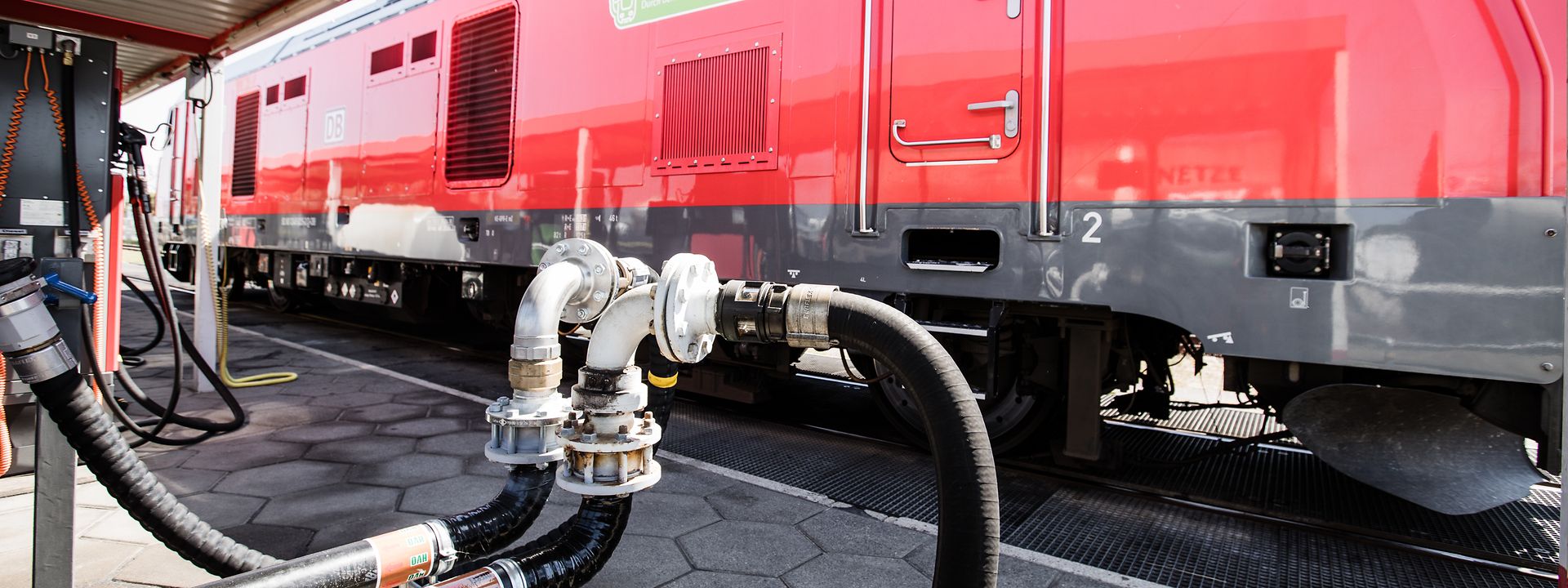 Gleichzeitig wird es auch in Zukunft Strecken geben, auf denen Güter und Personen aufgrund geografischer oder betrieblicher Besonderheiten nicht immer elektrisch ans Ziel gebracht werden können. Dort setzt die Deutsche Bahn daher auf einen mehrteiligen und technologieoffenen Ansatz mit alternativen Antrieben und Kraftstoffen als Ersatz für fossilen Diesel: Bei Neufahrzeugen kommen unter anderem neue Antriebsformen zum Einsatz – wie etwa Wasserstoff und Batterie-Technologie. Und bei Bestandsfahrzeugen wird seit 2022 auf alternative Kraftstoffe wie HVO als Übergangstechnologie gesetzt. Sie unterstützen dort, wo alternative Antriebe insbesondere im Schienengüterverkehr noch nicht serienreif verfügbar sind, um den konventionellen Dieselmotor zu ersetzen.