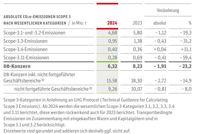 - Energie- und brennstoffbezogene Aktivitäten (Scope 3.3), darunter Emissionen aus Herstellung und Transport von Brennstoffen sowie Leistungsverluste im eigenen Bahnstromnetz