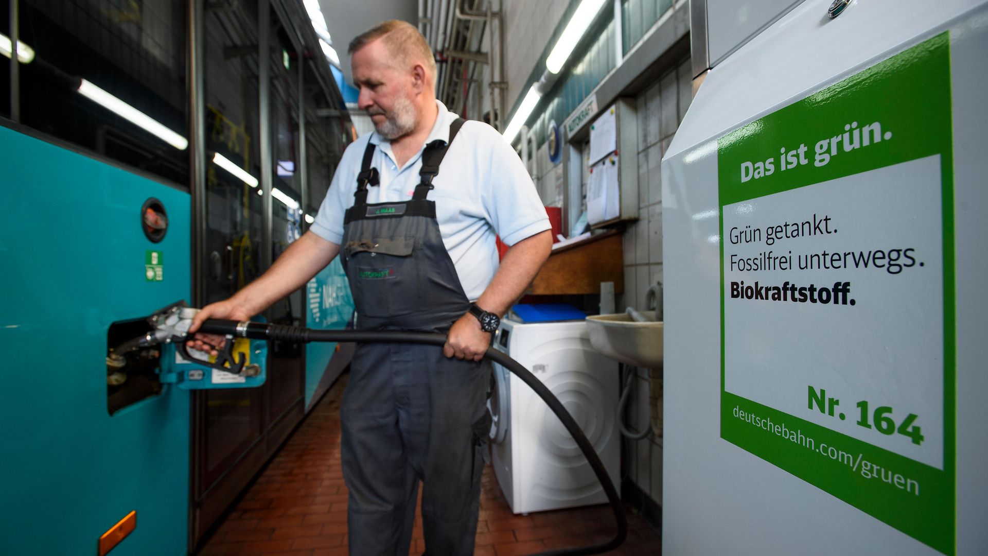 Ein Beispiel für den Einsatz alternativer Kraftstoffe bei der Deutschen Bahn ist der Biokraftstoff HVO (Hydrotreated Vegetable Oil). HVO wird aus biologischen Rest- und Abfallstoffen hergestellt. Für die Herstellung werden keine zusätzlichen Anbauflächen genutzt, die in Konkurrenz mit der Nahrungs- und Futtermittelproduktion stehen könnten. Außerdem ist der DB wichtig, dass der Biokraftstoff frei von Palmöl ist. Aus diesem Grund müssen Lieferanten entsprechende Bescheinigungen über die Einhaltung der hohen Anforderungen ausstellen.