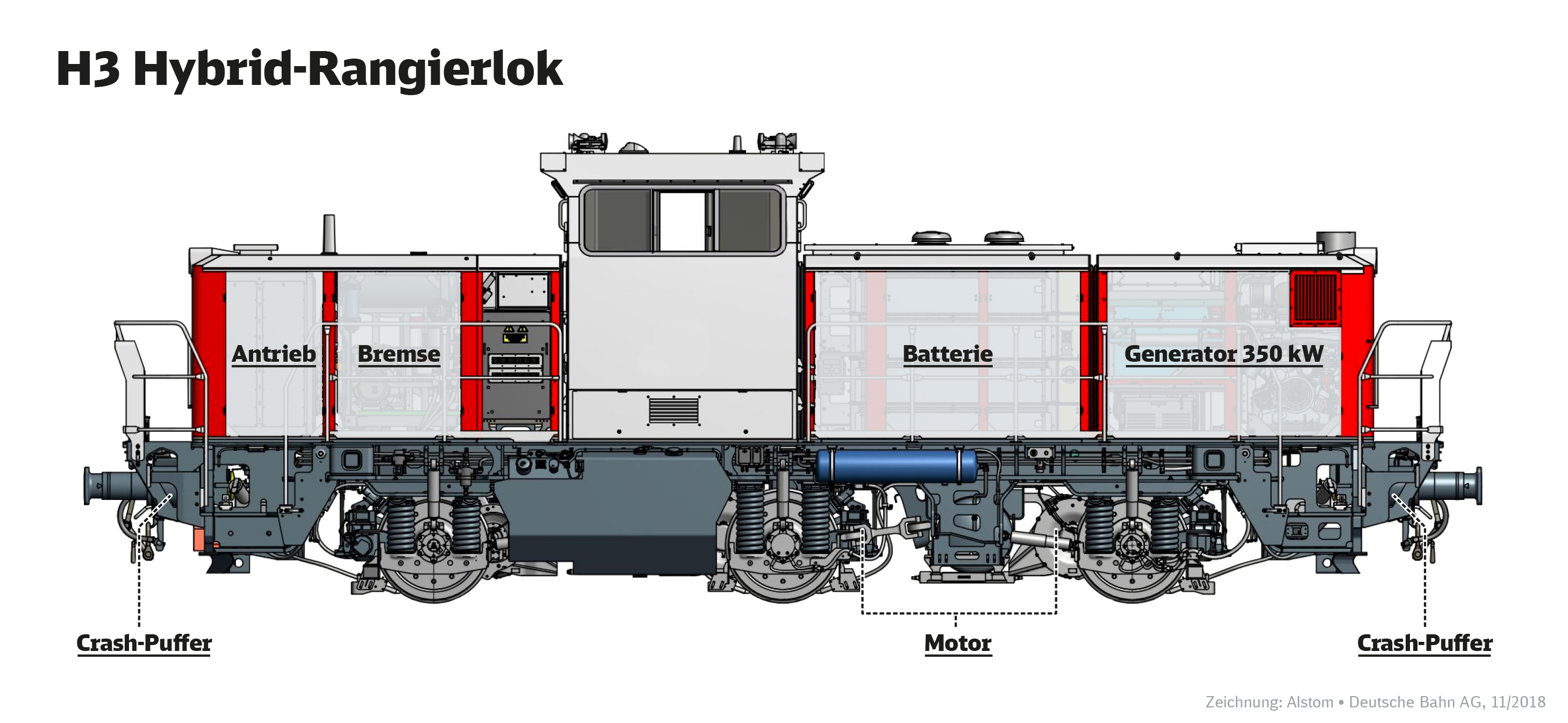 In einem Pilotprojekt will die DB die technische und wirtschaftliche Serienreife von Hybridlokomotiven erreichen. Dafür setzt der Konzern auf die klimafreundliche „Prima-H3-Hybridlokomotive“ von Alstom. Die ersten Züge sind bei DB Regio Bayern in Nürnberg und München im Einsatz. Auch in der Flotte von DB Fernverkehr unterstützen neue Prima-H3-Rangier-Loks an den Werksstandorten Basel und Berlin-Rummelsburg im Rangierverkehr.