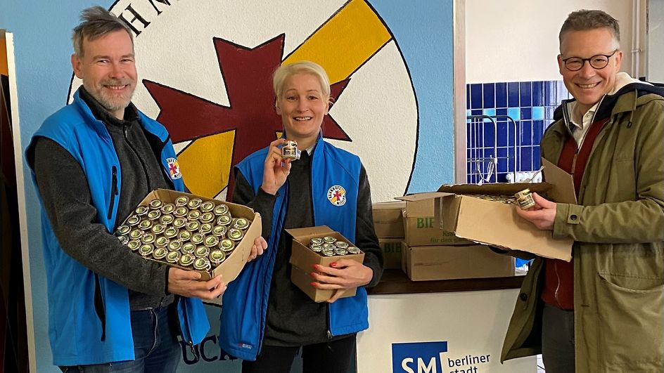 Wir als Deutsche Bahn haben nun erneut Honig an den gemeinnützigen Verein Berliner Tafel e.V. gespendet. Mehr als 900 Gläschen Honig wurden dafür umweltfreundlich mit einem Lastenrad ins Lager der Berliner Tafel transportiert und an Thomas Freiesleben, Bereichsleiter für Fundraising Berliner Tafel e.V., überreicht. Die Tafel liefert Lebensmittel regelmäßig an über 40 Ausgabestellen in Berlin, die sie dann an Bedürftige verteilen.