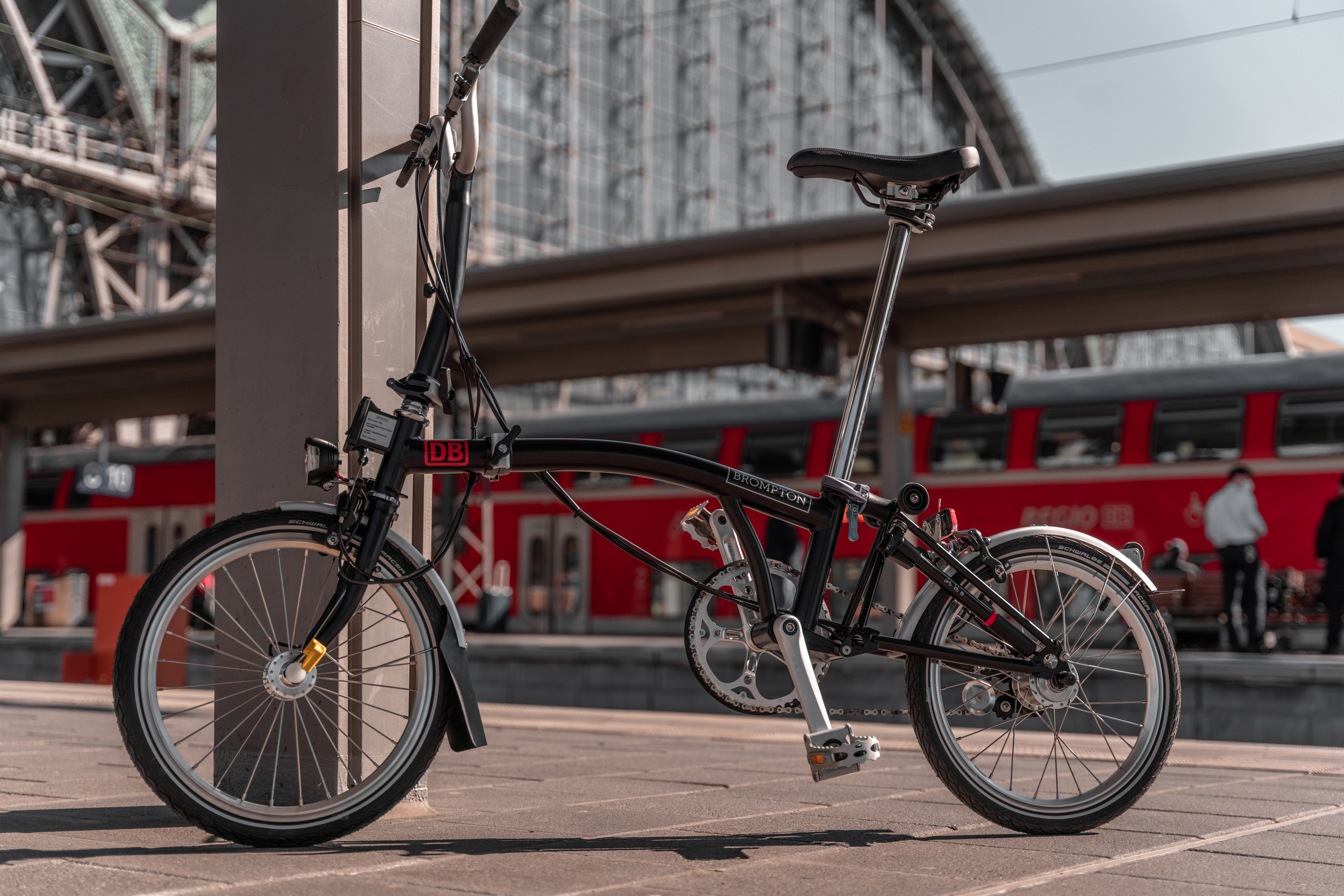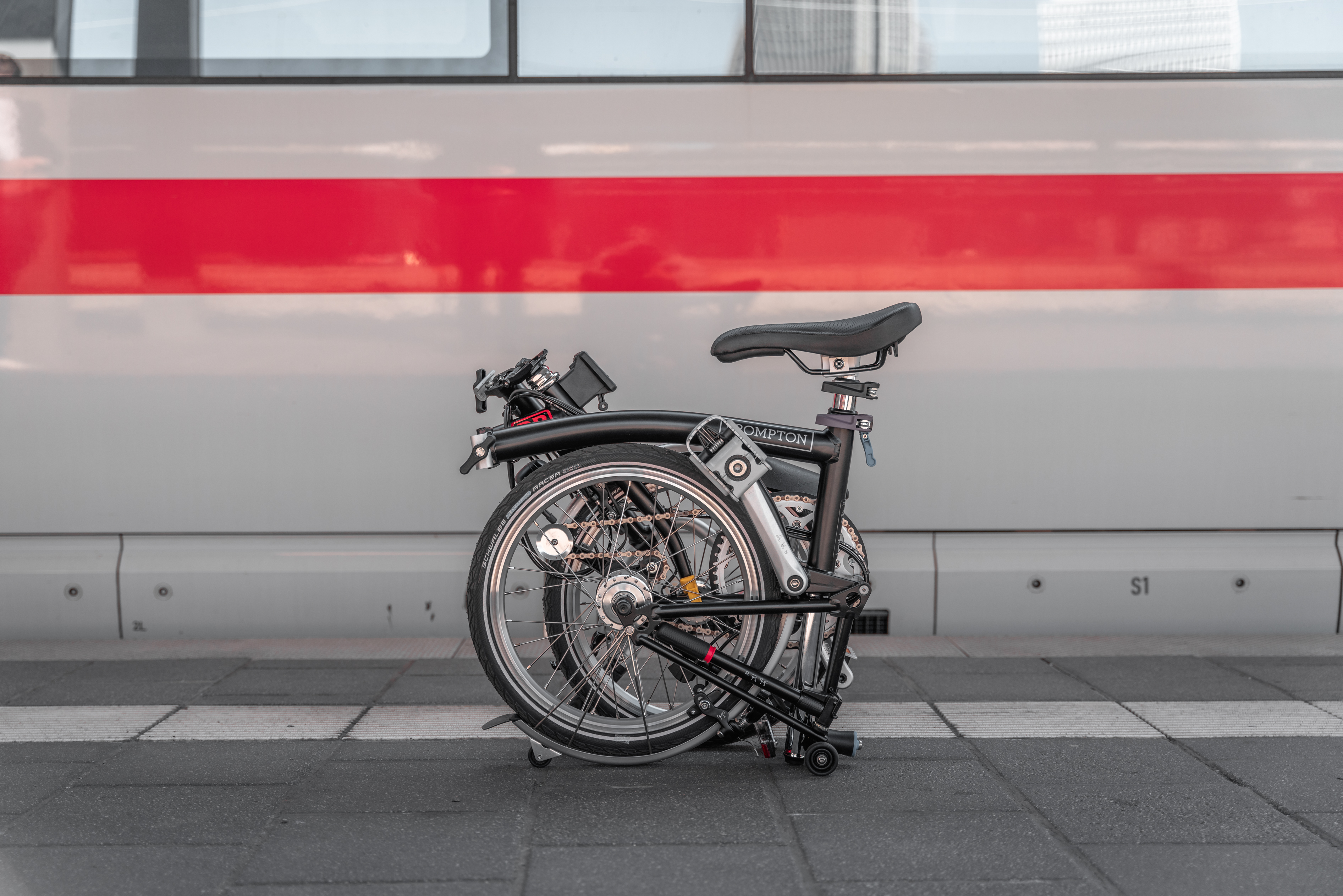 In cooperation with London-based folding bike specialist Brompton, Deutsche Bahn offers a subscription model. Users can rent a high-quality folding bike and take it as hand luggage on buses and trains free of charge. Folded, the bikes count as luggage, so commuters can bring them without needing bike tickets or worrying about restricted travel times. The folding bikes pack into a portable, space-saving package, making them particularly practical for the trip to and from the station — no parking search required.