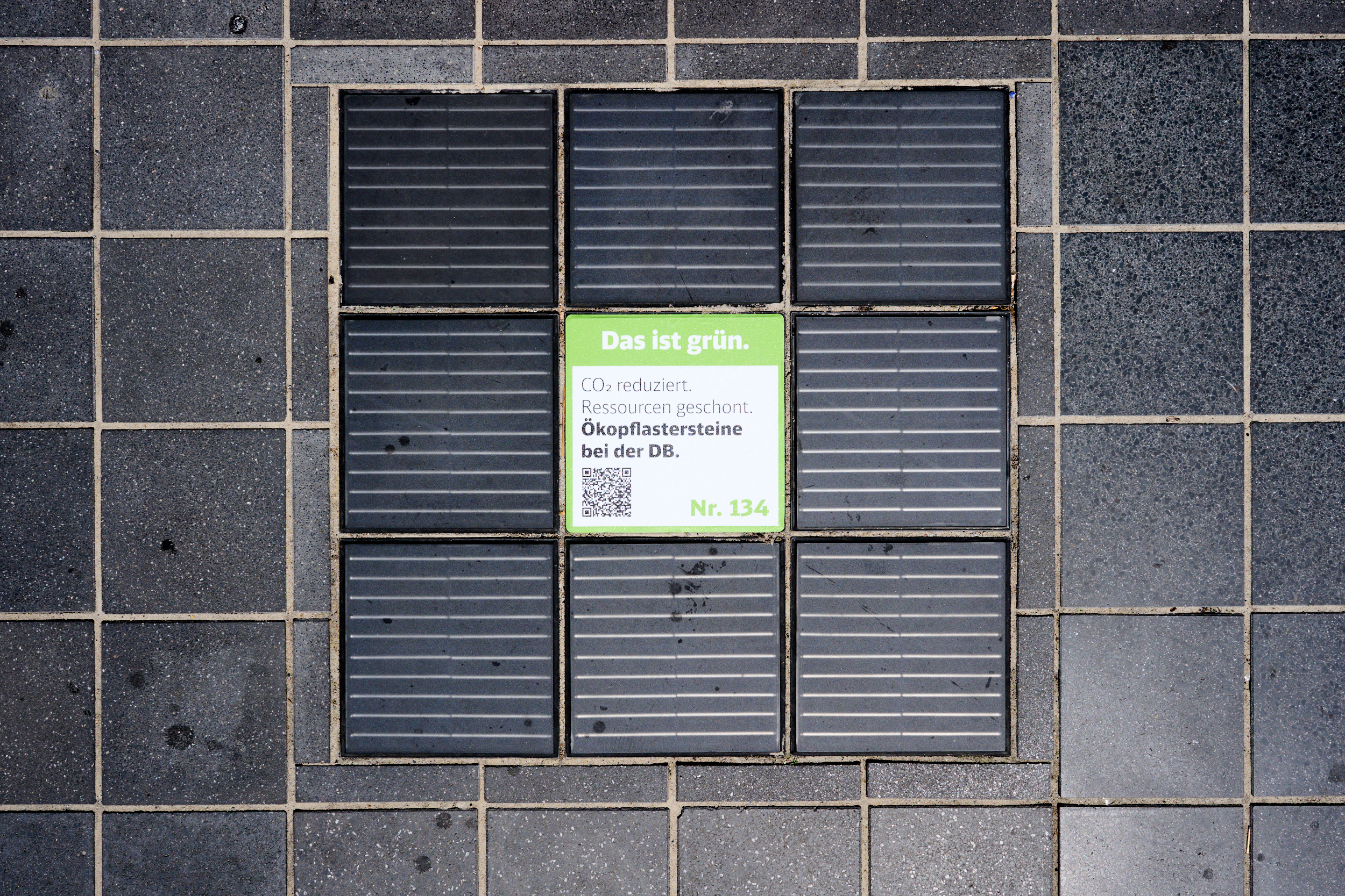 Eco-paving stones are produced using innovative and environmentally friendly methods, which include the use of renewable energy and treated rainwater. Additionally, so-called concrete block chipping is used. Up to 40 percent of the material, which previously ended up in road construction, is recycled in the eco-paving stones that DB has been using since 2014. Several transport stations have already been paved with these recycled stones – for example, at Westfrankenbahn and the stations Weiterstadt, Laudenbach (Württ), and Sulzbach (Main).