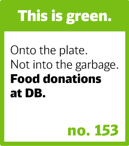 At its logistics locations, DB employees check which food items are still suitable for consumption and hand them over to local food banks. DB also regularly donates food from onboard catering to the charity organization Arche.