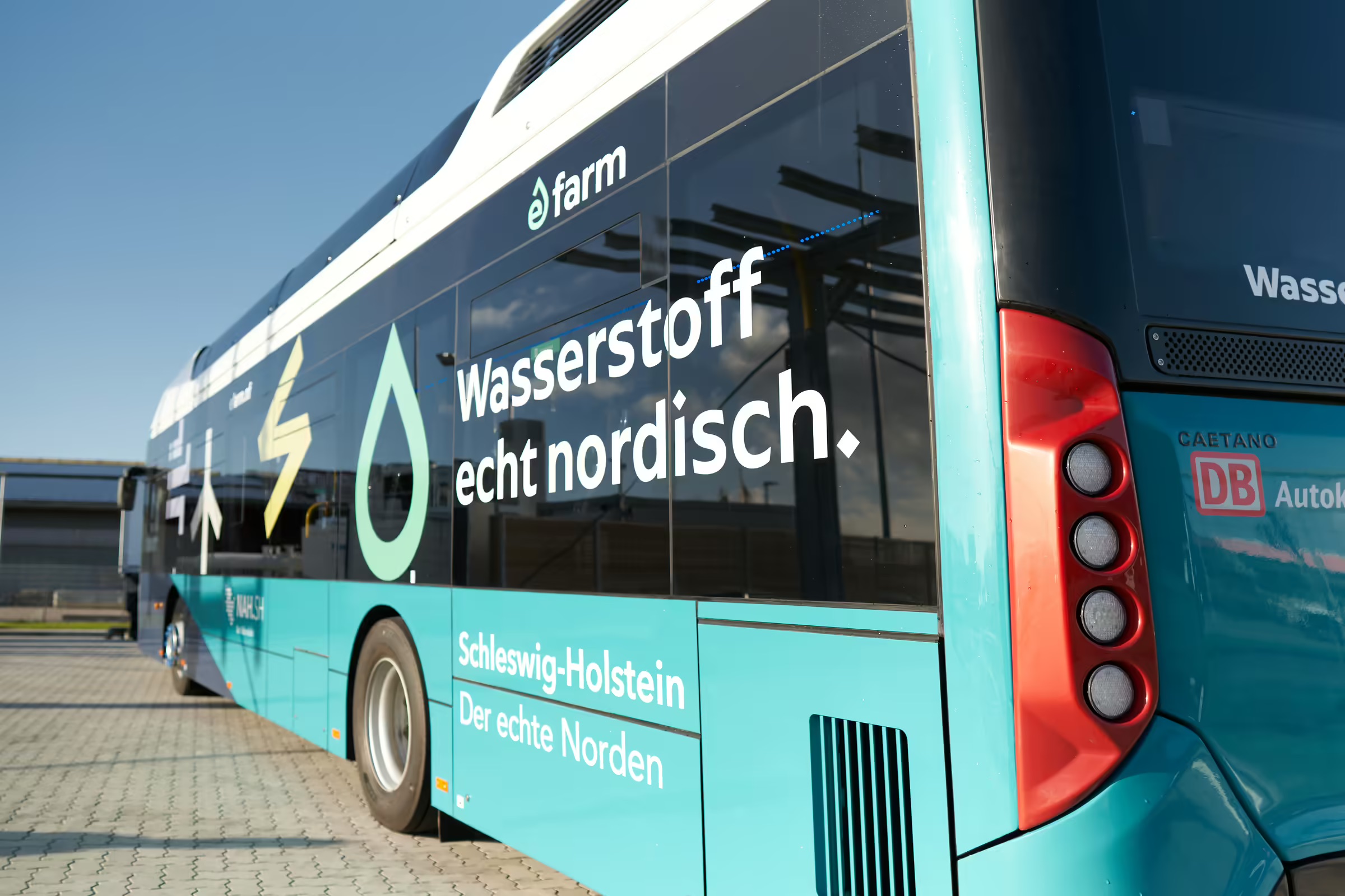 DB is also promoting climate-friendly transport on roads. In Nordfriesland, DB subsidiary Autokraft operates two local zero-emission hydrogen fuel cell buses in a pilot project around Niebüll and Husum. The buses, from Portuguese manufacturer CaetanoBus, have a range of up to 400 kilometers and are refueled with green hydrogen produced from excess wind power at two public stations. The project is called “eFarm.”